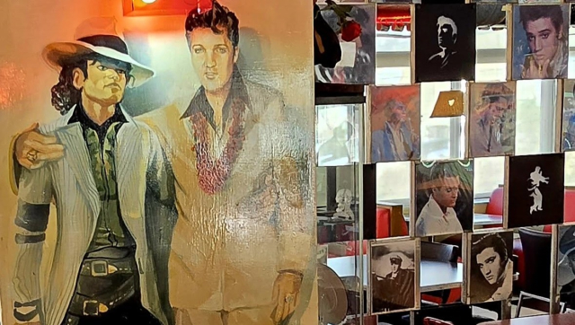 Izraelben megálltunk tankolni az Elvis üzemanyag kútnál. Az egész üzlet tele volt Elvis szobrokkal, képekkel. Egy képen ott volt a két sztár: Elvis és Michael Jackson.