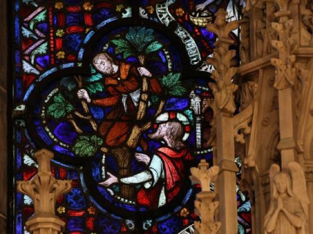 b_300_300_16777215_00_images_stories_Szent_Szent_helyek_14991860_1184590038283279_6038401441544737153_n.jpgAbban az időben: Jézus Jerikó városán haladt át. Élt ott egy Zakeus nevű gazdag ember, aki a vámosok feje volt. Szerette volna látni és megismerni Jézust, de a tömeg miatt nem láthatta, mert alacsony termetű volt. Így hát előrefutott, felmászott egy vad fügefára, hogy láthassa, mert Jézusnak arra kellett elhaladnia. Amikor Jézus odaért, felnézett és megszólította:
