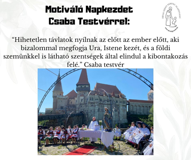 b_300_300_16777215_00_images_stories_Csaba_levelek_Resized_498296711_122188981364265175_4580773089786355154_n.jpgHihetetlen távlatok nyílnak az előtt az ember előtt, aki bizalommal megfogja Ura, Istene kezét, és a földi szemünkkel is látható szentségek által elindul a kibontakozás felé.