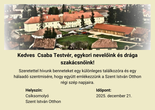 b_300_300_16777215_00_images_stories_Jo_Rendezvenyek_somlyo2112.jpgSzeretettel hívunk benneteket egy különleges találkozóra és egy hálaadó szentmisére, hogy együtt emlékezzünk a Szent István otthon régi szép napjaira.