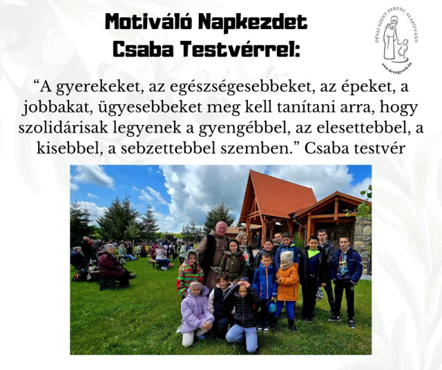 Rőviden 2026. január 10. Találatok: 436 Meg kell tanítani.... Nyomtatás E-mail A gyerekeket, az egészségesebbeket, az épeket, a jobbakat, ügyesebbeket meg kell tanítani arra, hogy szolidárisak legyenek a gyengébbel, az elesettebbel, a kisebbel, a sebzettebbel szemben. Csaba testvér Előző Tovább tweet