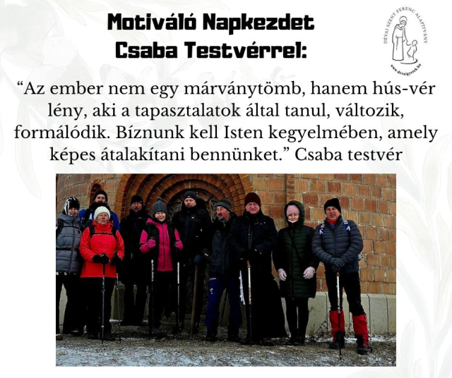 b_300_300_16777215_00_images_stories_Csaba_levelek_Resized_622347376_122230451906265175_2612032345213662450_n.jpgAz ember nem egy márványtömb, hanem hús- vér lény, aki tapasztalatok által tanul, változik, formálódik. Bíznunk kell Isten kegyelmében, amely képes átalakítani bennünket.