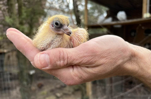 Kép: Galamb fióka, most bújt elő a tojásból.