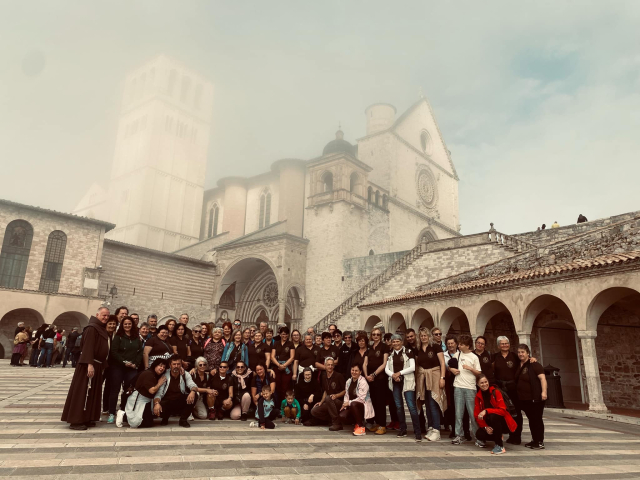 Kép: Szent Ferenc Alapítvány munkatársai Assisiben, Szent Ferenc sírjánál!