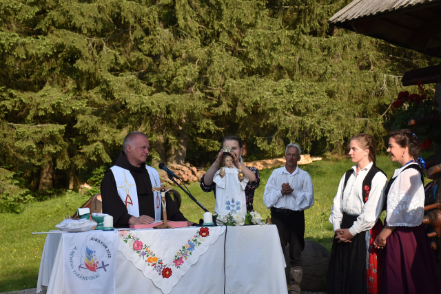 Kép: Ki a te királyod? Mi a csinódi kápolna udvarán gyermekeinkkel megkoronázzuk a gyermek Jézus szobrát.