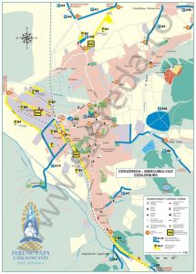 Pénteken (május 31.) 20:00 órától teljesen tilos lesz a behajtás az úgynevezett zarándokhelyre és az azt kiszolgáló utcákba, a csíksomlyói kegytemplom körüli övezetbe. Azok sem hajthatnak be, akiknek ott van szálláshelyük. A térképen kék színnel vannak jelölve azok a helyek, ahol személygépkocsik, és sárgával, ahol az autóbuszok számára biztosítanak parkolóhelyeket.