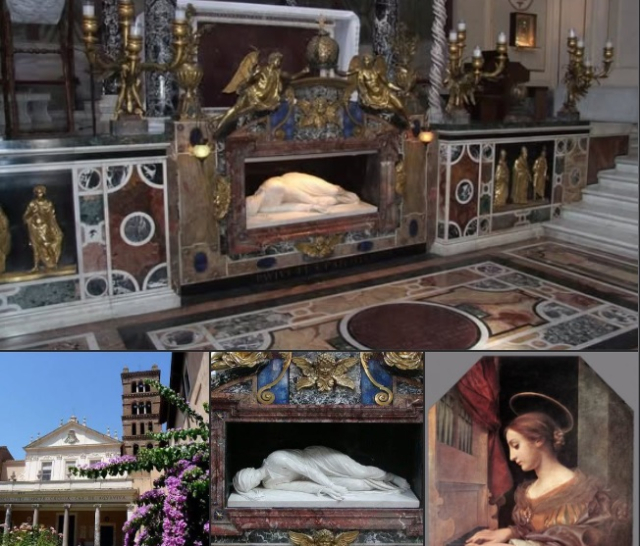Róma, Trastevere, a Szent tiszteletére épült bazilika. Hétköznap délelőtt volt, egy nővér virágokat locsolt, más nem volt a templomban...én pedig letérdeltem...ilyen közel ritkán éreztem a szentek élő jelenlétét.