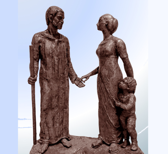 Templomunkban látható R. Törley Mária szobrász művész alkotása. A szobor Flüe-i Szent Miklóst és feleségét -Dorothea asszonyt- ábrázolja legkisebb gyerekükkel együtt, megörökítve a búcsúzás pillanatát, amikor Szent Miklós - Isten hívására, felesége és püspöke engedélyével - a remeteségbe vonult vissza.