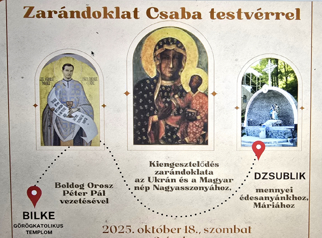 Október 18-án, Boldog Orosz Péter atya sírjánál imádkozunk, majd átmegyünk egy nemrég született Mária-kegyhelyre, ahól 2002-ben a Szűzanya két kisiskolásnak jelent meg. Kíváncsi vagyok, hogy maga a Béke Királynője mit mondott, mond az ukrán nemzetiségi gyermekek által a háború szakadéka szélén egyensúlyozó világnak!