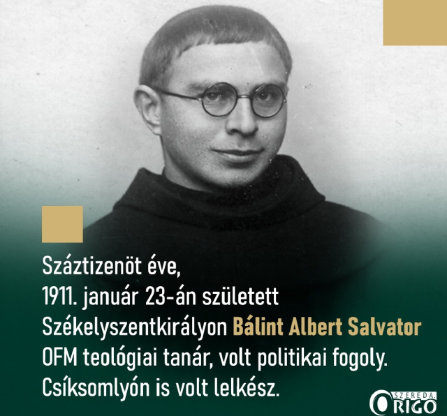 Rőviden 2026. január 23. Találatok: 13 Bálint Albert Salvator OFM száztizenöt éve született Nyomtatás E-mail Szálvátor atya öltöztetett szerzetes ruhába a marosvásárhelyi ferences templomban!! Emléke legyen áldott, Csaba t. Tovább tweet