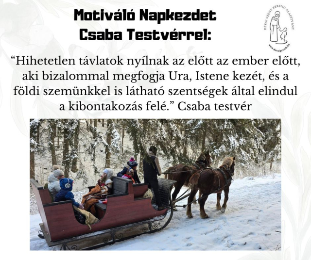 b_300_300_16777215_00_images_stories_Csaba_levelek_Resized_622716545_122230451312265175_6699651852005602373_n.jpgHihetetlen távlatok nyílnak az előtt az ember előtt, aki bizalommal megfogja Ura, Istene kezét, és a földi szemünkkel is látható szentségek által elindul a kibontakozás felé.